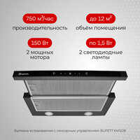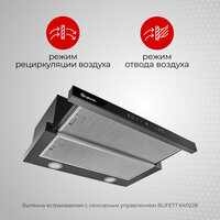 Вытяжка встраиваемая кухонная 60 см с угольным фильтром Bufett 640228, черная: сравнение цен, характеристики, фото, актуальное наличие и цены.