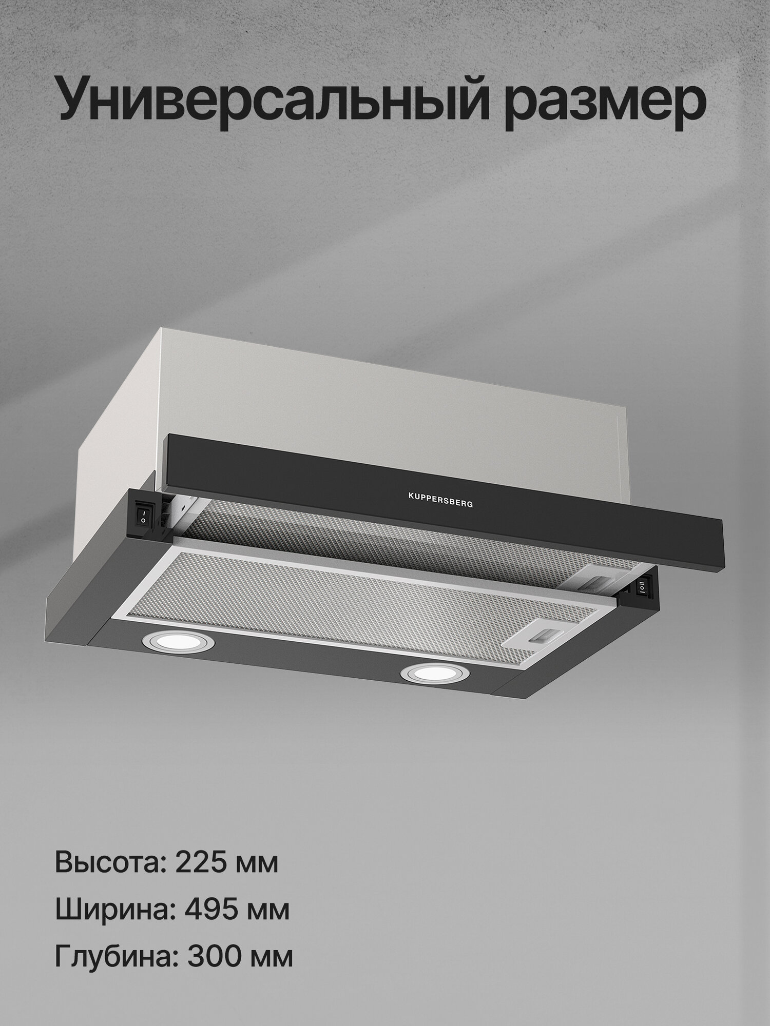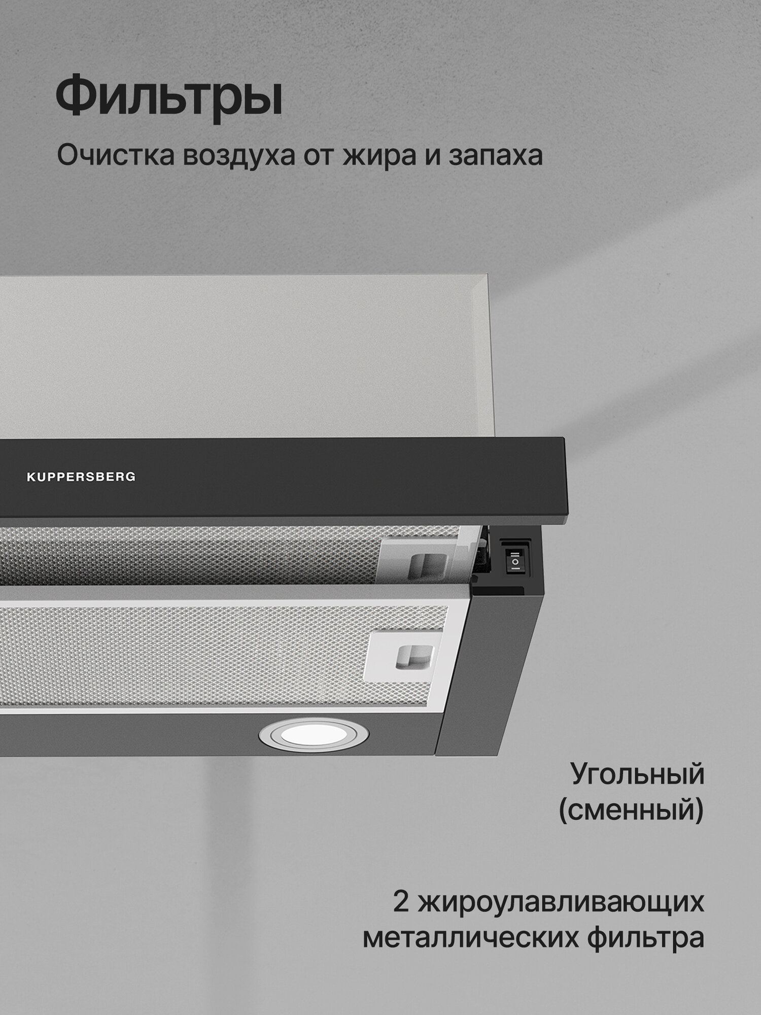 Вытяжка Kuppersberg SLIMHIT 50 B, электрическая (Модификация 2025 года): сравнение цен, характеристики, фото, актуальное наличие и цены.