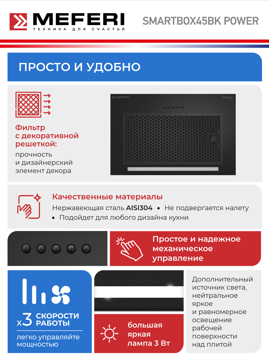 | Дополнительная информация | вытяжка; антивозвратный клапан/переходник; жировой фильтр; комплект монтажа; инструкция на русском языке; гарантийный талон на 3 года. |