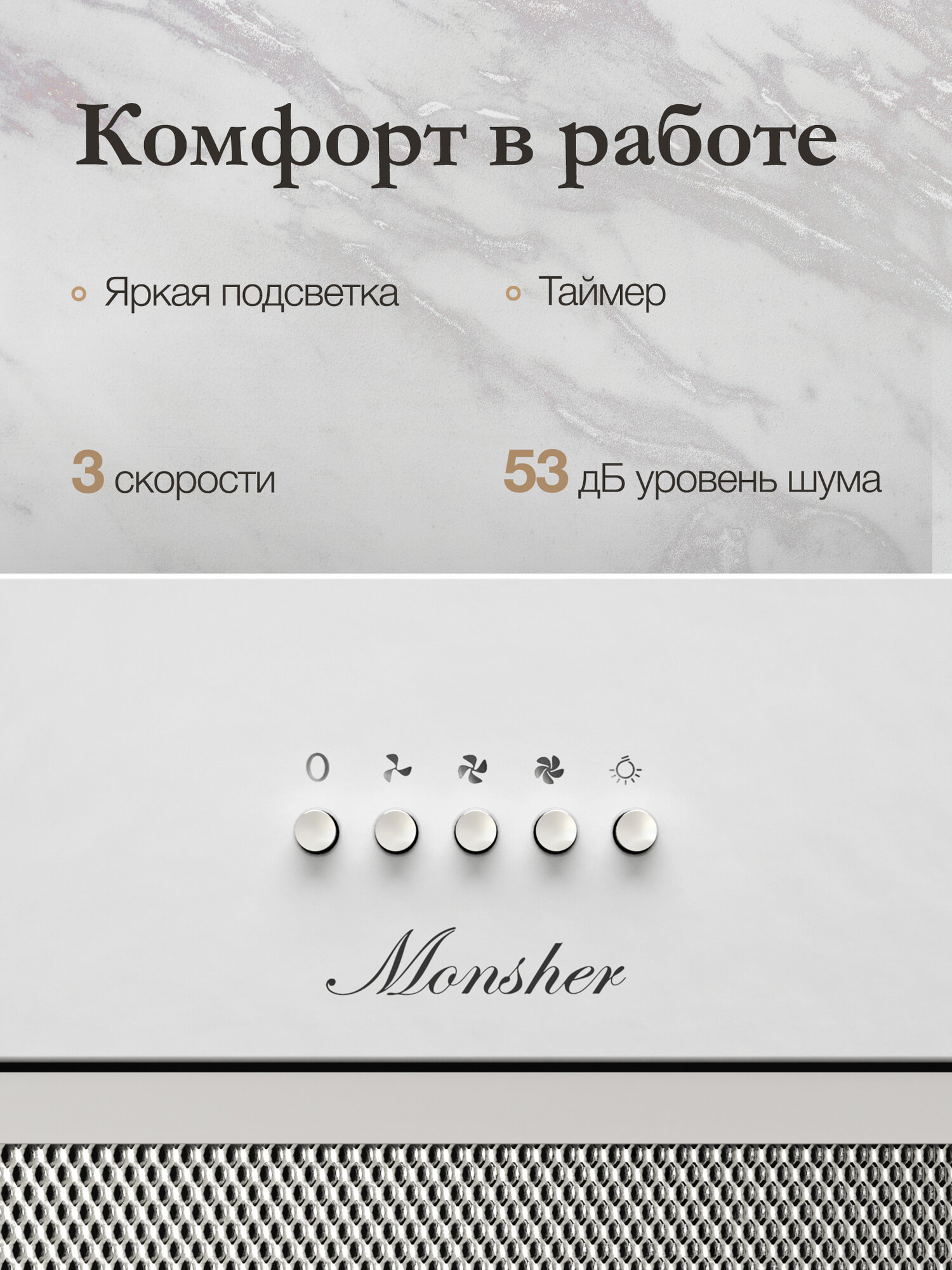 Купить Вытяжка встраиваемая Monsher AMIE 60 Blanc (Модификация 2025 года) с доставкой по всей России.