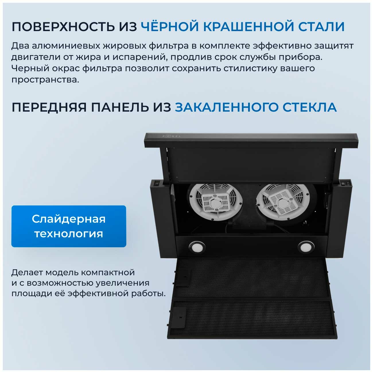 Встраиваемая вытяжка ZUGEL ZHT651GB, черный, 3 скорости, 2х110 Вт