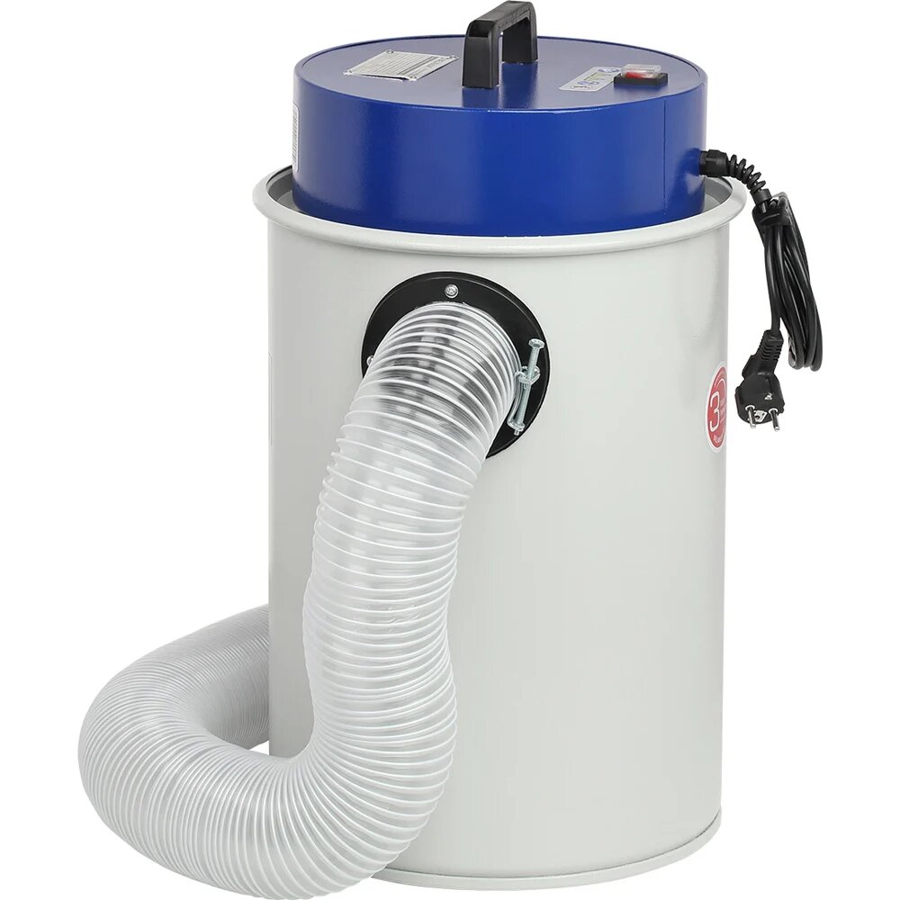 Стружкоотсос имеет компактные размеры, поэтому идеально подходит для работы в ограниченном пространстве. Вес всего 11 кг, легко перемещать по мастерской, для этого есть ручка в верхней части корпуса.