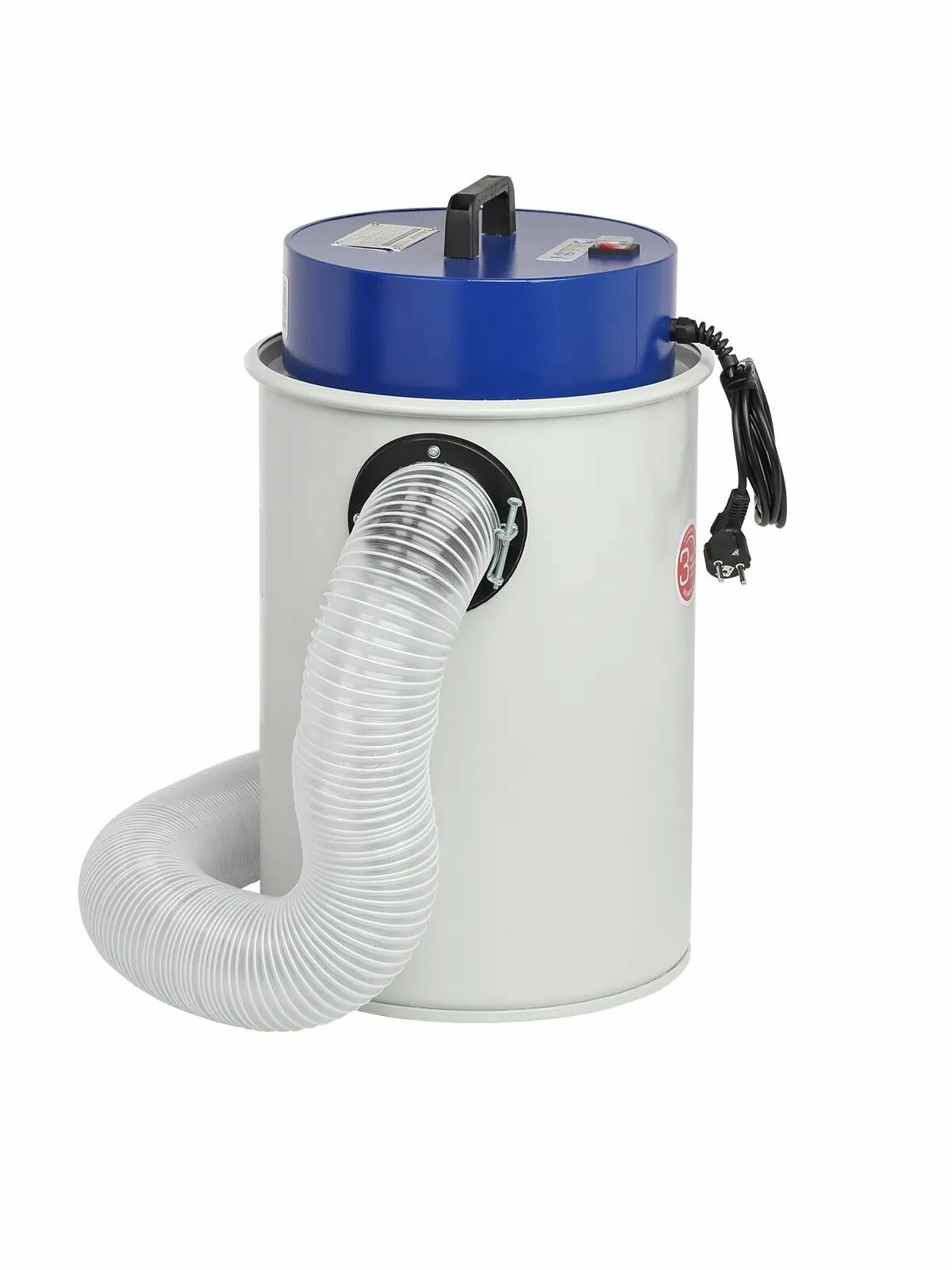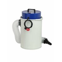 Воздух со стружками всасывается через входной патрубок (диаметром 100 мм) и попадает в цилиндрический корпус установки. Наиболее тяжелые частицы под действием силы тяжести падают вниз. Затем воздух проходит через бумажный фильтр-мешок и попадет в фильтр-картридж (гофрированный полиэстер) и выходит наружу. Степень фильтрации 0,5 мкм - самая большая в линейке вытяжных установок BELMASH.