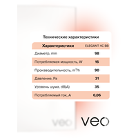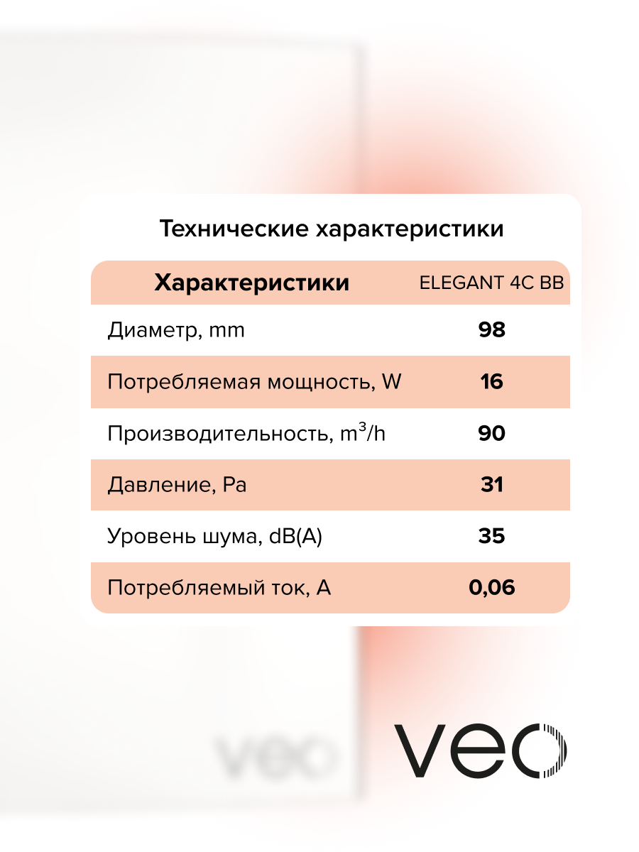 Вытяжной вентилятор 100 мм VEO ELEGANT 4 C BB, в ванную, кухню, 90м3/ч, двигатель на шарикоподшипниках, обр. клапан: сравнение цен, характеристики, фото, актуальное наличие и цены.