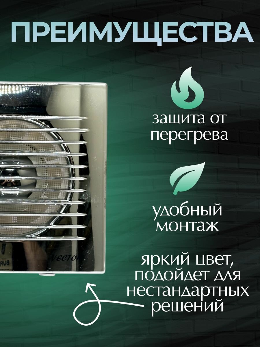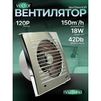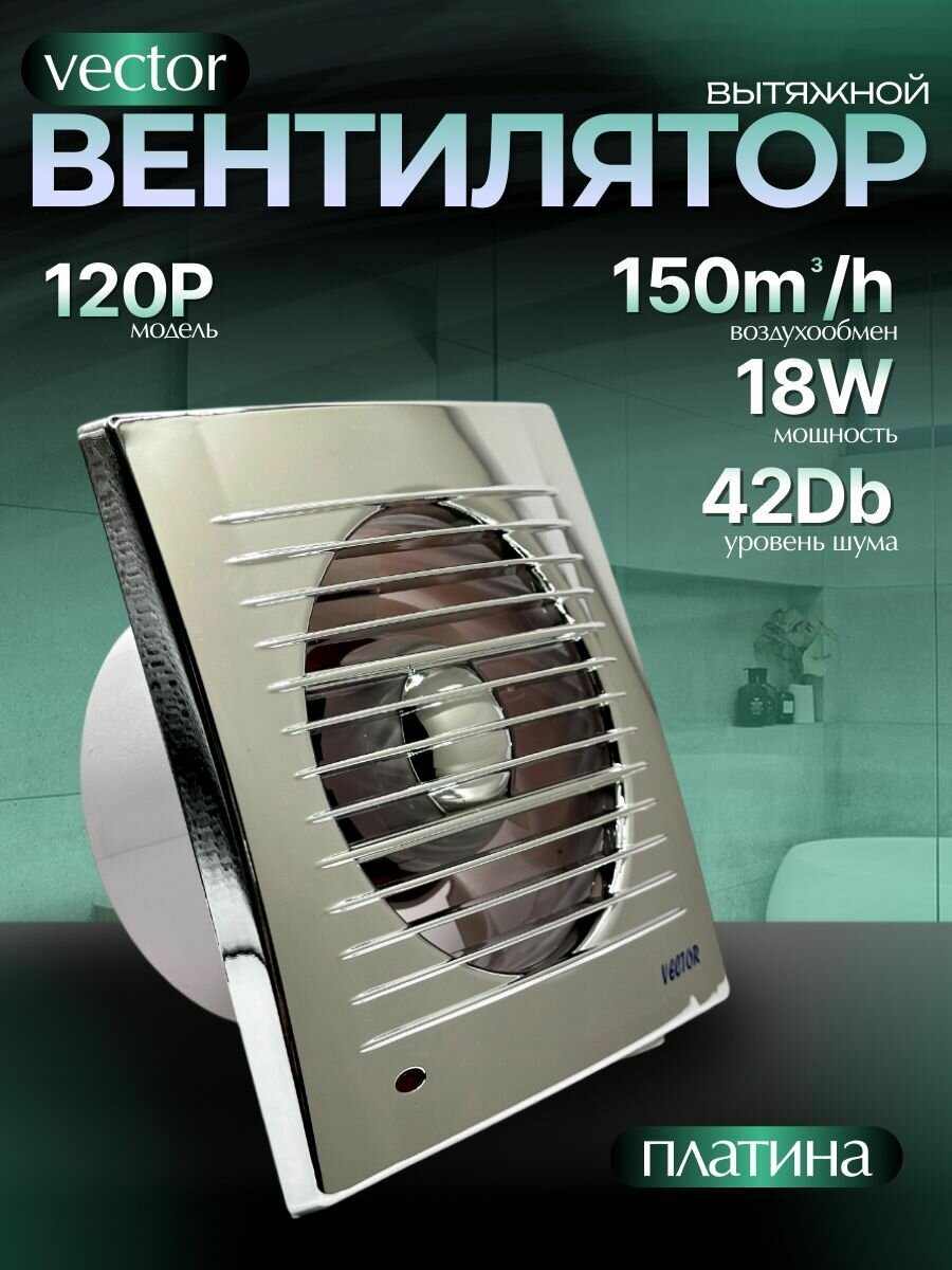 Вытяжной вентилятор Vector 120P(платинум), зеркальный , Диаметр 150, воздухообмен 120 м3/ч, цвет глянцевое серебро (металик, хром) в туалет ванную кухню: сравнение цен, характеристики, фото, актуальное наличие и цены.