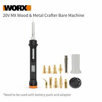 WX744.9 Аккумуляторный паяльник с возможностью выжигания по дереву и металлу WORX WX743.9 входящий в семейство инструментов Maker X. Благодаря концепции аккумуляторного адаптера и силовому кабелю длиной 1 м устройство можно использовать где угодно. Пользователь не зависит от источника питания и может использовать устройство где угодно. Устройство удобно лежит в руке благодаря тонкому корпусу. Дисплей температуры, хорошо видимый, расположен в корпусе устройства. Кончик насадки может нагреваться от 200 ° до 480 ° C. Подобные температуры позволяют использовать его для выжигания на дереве на дереве и металле. Различные насадки, входящие в комплект, позволяют выбрать необходимую для той или иной задачи. Время автономной работы (2,0 Ач) составляет 80 минут.