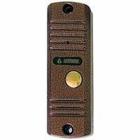 Исполнение корпуса для "накладной" установки из прочного алюминиевого сплава, покрытого ударопрочной порошковой краской. Кнопка вызова способна выдерживать фронтальные удары благодаря особенностям внутренней конструкции. Звуковая плата разработана российскими специалистами и обеспечивает отличное качество аудио связи между вызывной панелью и аудио трубкой домофона. Цветовая гамма состоит из трех цветов: серебряный антик, медный антик, черный. Разработана и производится в России более 20 лет.