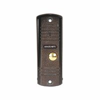 Антивандальная вызывная панель с разрешением 700 TVL и объективом 3,7 мм. Угол обзора составляет 61 градуса по горизонтали и 85 градусов по диагонали. Камера имеет ИК-подсветку до 3 метров и оснащена 5 ИК-диодами. Панель имеет встроенный микрофон и динамик, что позволяет общаться с посетителями через домофон. Питание осуществляется от монитора, максимальное энергопотребление составляет 1,5 Вт при включенной подсветке. Рабочая температура составляет от -45 до +60 градусов. Размеры панели составляют 122x41x23 мм при весе 350 грамм. В комплект входит монтажный комплект, монтажный кронштейн и козырек. Панель выполнена из алюминия и имеет бронзовый цвет. Она имеет антивандальную защиту и устанавливается на стену с помощью монтажного комплекта.