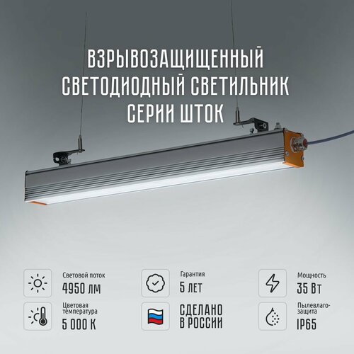 Взрывозащищенный промышленный линейный светодиодный подвесной светильник Шток 220в 35 вт SSU-1Ex-220.35-5К. Д-05.1 для освещения гаража, производства, автосервиса, мастерской: сравнение цен, характеристики, фото, актуальное наличие и цены.