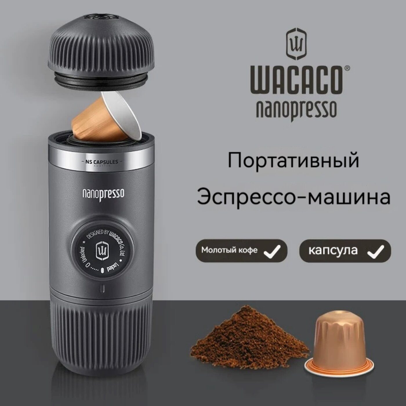 Купить WACACO-Nanopressor (версия с капсульным и порошковым кофе), портативная кофемашина, ручное отжимание с доставкой по всей России.
