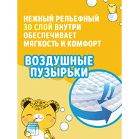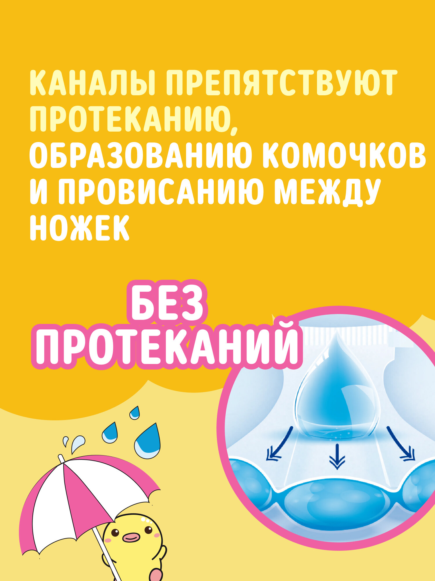 антисептические добавки, боковые внутренние бортики, большая упаковка, индикатор наполнения, многоразовые застежки-липучки, рельефная внутренняя поверхность, эко-подгузники, эластичные резинки вокруг ножек, эластичный пояс