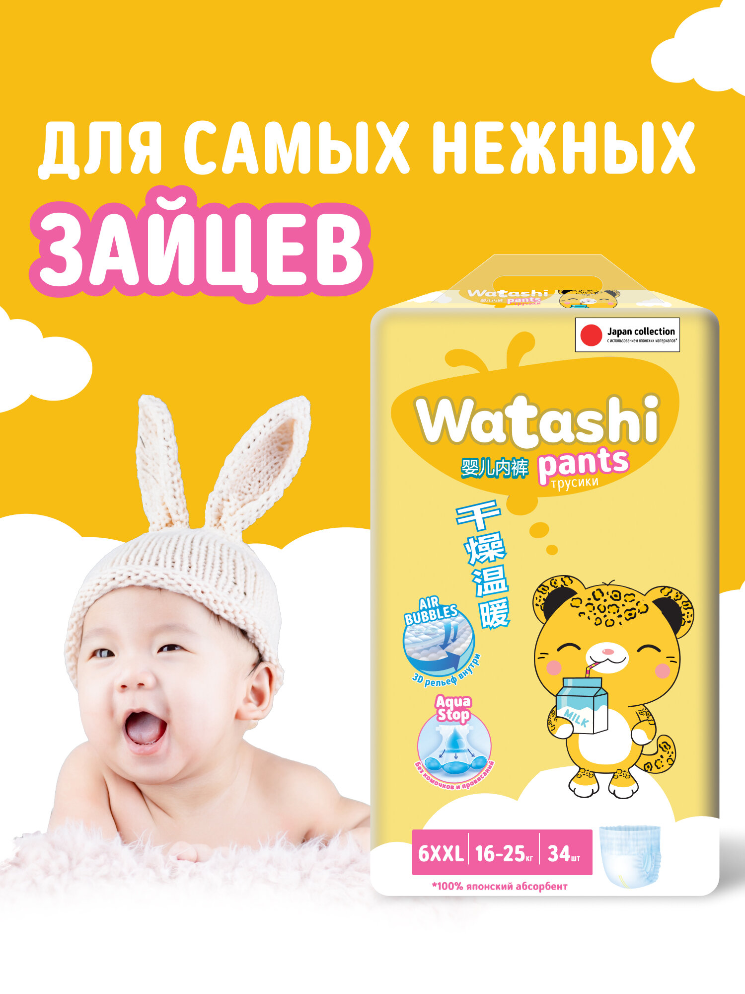 Купить Подгузники трусики детские 6 XXL размер 16-25 кг, 34 шт, WATASHI с доставкой по всей России. Подгузники трусики детские 6 XXL размер 16-25 кг, 34 шт, WATASHI: сравнение цен, характеристики, фото, актуальное наличие и цены.