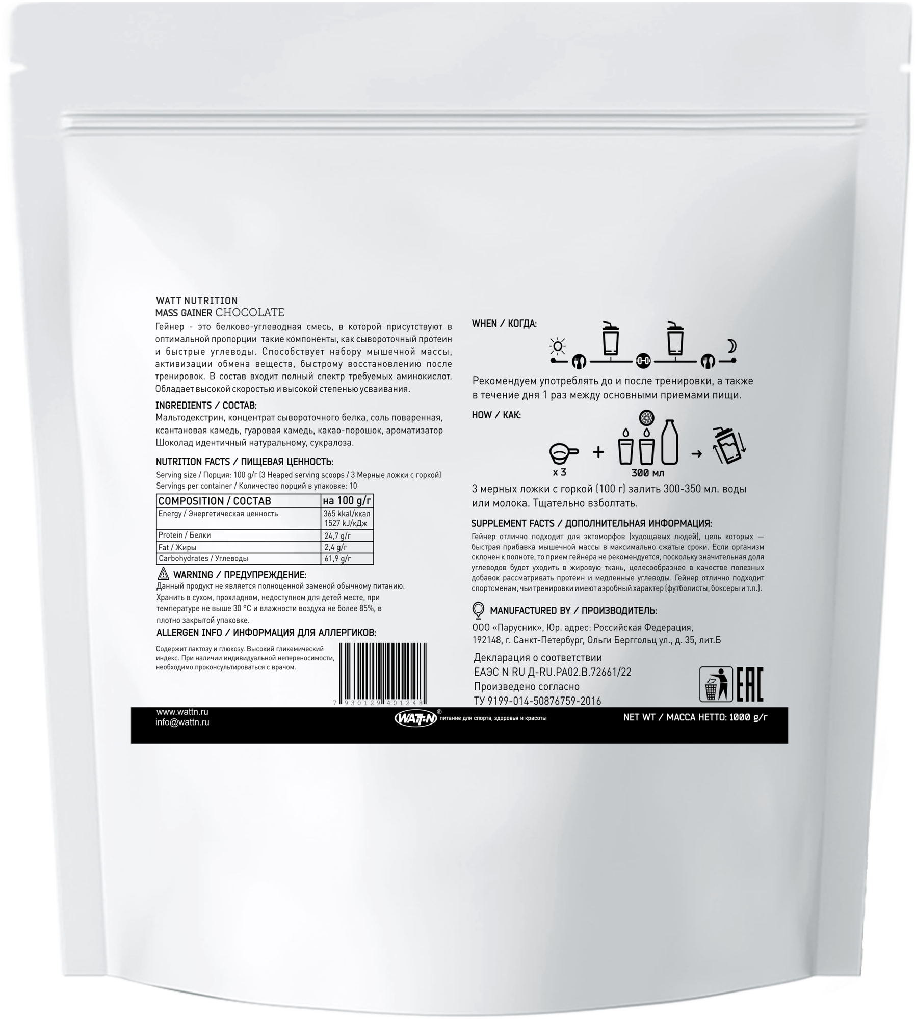 Купить WATT NUTRITION Гейнер Mass Gainer на быстрых углеводах, 1000 гр, вкус Шоколад с доставкой по всей России. WATT NUTRITION Гейнер Mass Gainer на быстрых углеводах, 1000 гр, вкус Шоколад: сравнение цен, характеристики, фото, актуальное наличие и цены.