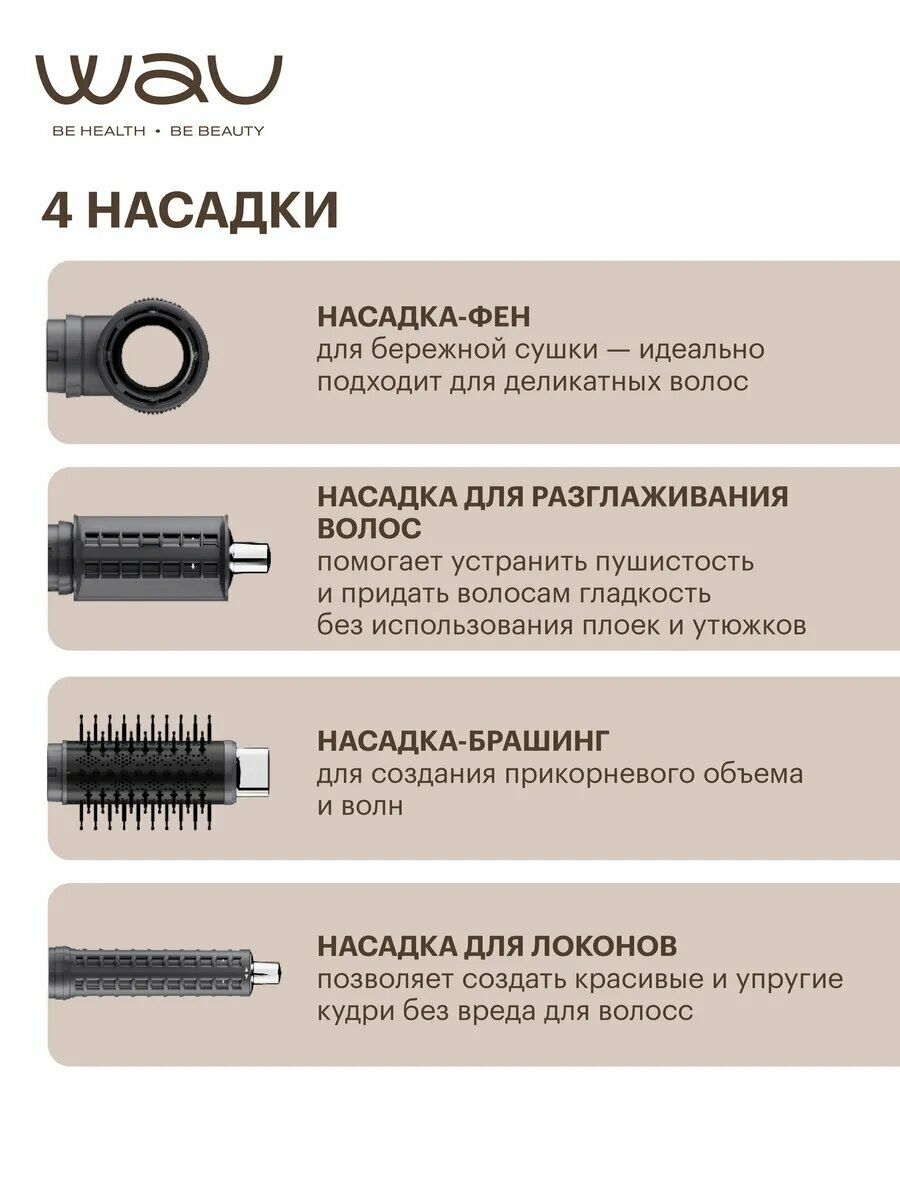WAU Фен стайлер для укладки волос KARU с функцией ионизация, 4 насадки: сравнение цен, характеристики, фото, актуальное наличие и цены.