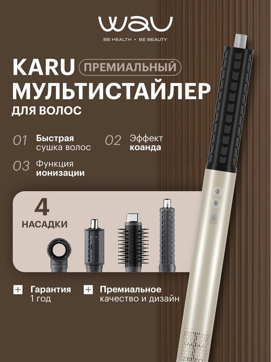 Купить WAU Фен стайлер для укладки волос KARU с функцией ионизация, 4 насадки с доставкой по всей России.