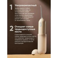 | Подробная комплектация | 1) ирригатор, 2) стандартное сопло, 3) пародонтологическое сопло, 4) ортодонтическое сопло, 5) насадка для чистки языка, 6) мешочек для хранения, 7) кабель для зарядки USB-C, 8) инструкция |
