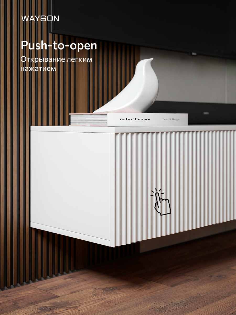 Материалы: Корпус и фасады выполнены из высококачественного ЛДСП, что обеспечивает долговечность и устойчивость к повреждениям. Открытие: Тумба оснащена системой пуш-опен, что позволяет легко открывать дверцы одним нажатием, придавая мебели современный и минималистичный вид. Дизайн: Матовые поверхности корпуса и фасада придают тумбе стильный и актуальный вид, который легко впишется в любой интерьер.