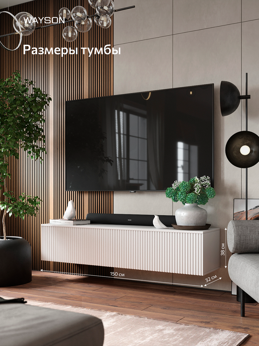 Тумба подвесная под телевизор - станет идеальным дополнением вашего интерьера, добавит стиль и функциональность. Тумбочка под телевизор располагает достаточным пространством для размещения телевизора и других аксессуаров. Тумба под ТВ "Олимпия" не только красиво смотрится, но и обладает высокой прочностью благодаря качественным материалам. Тумба для телевизора станет центром внимания в вашей гостиной, а ее функциональность позволит вам легко поддерживать порядок.