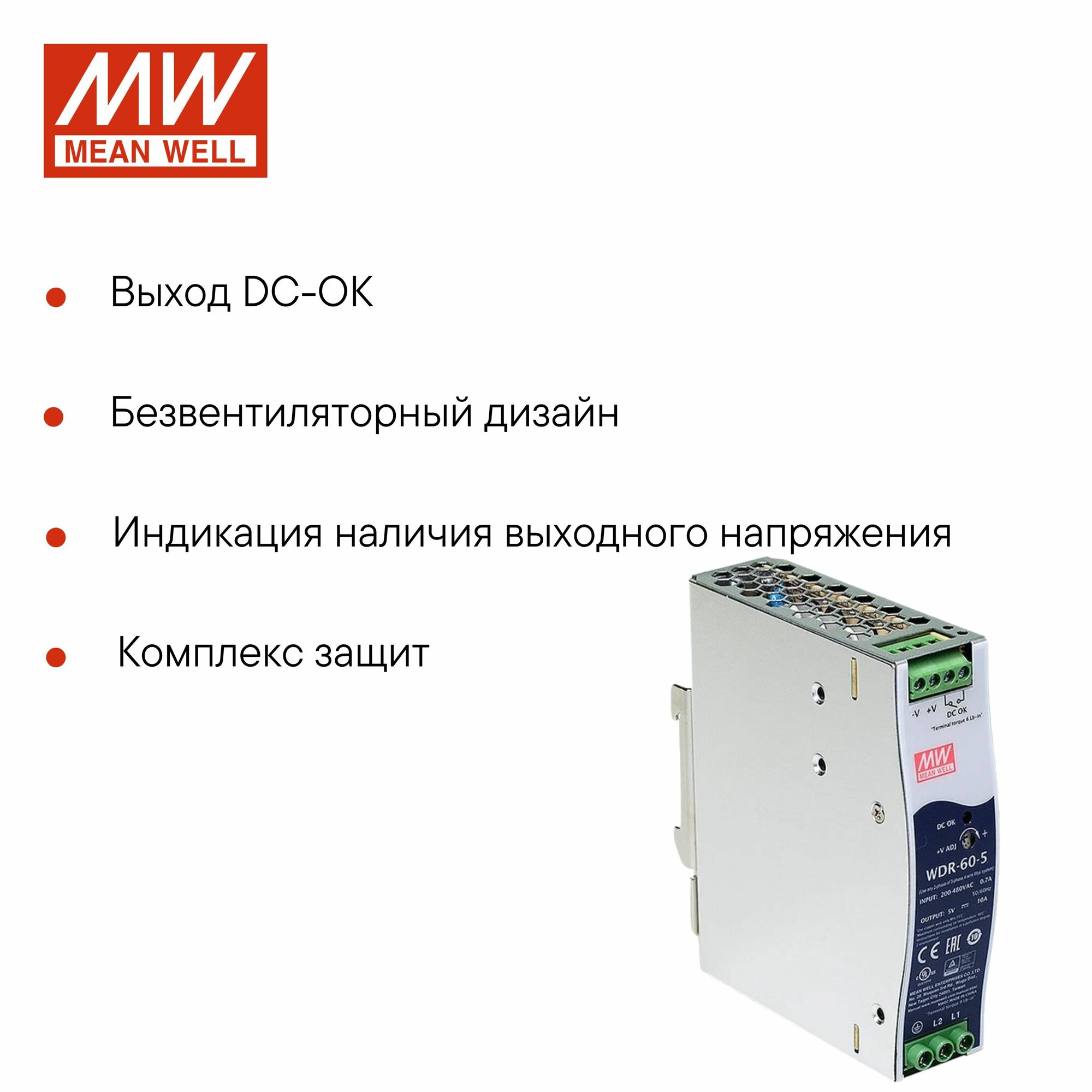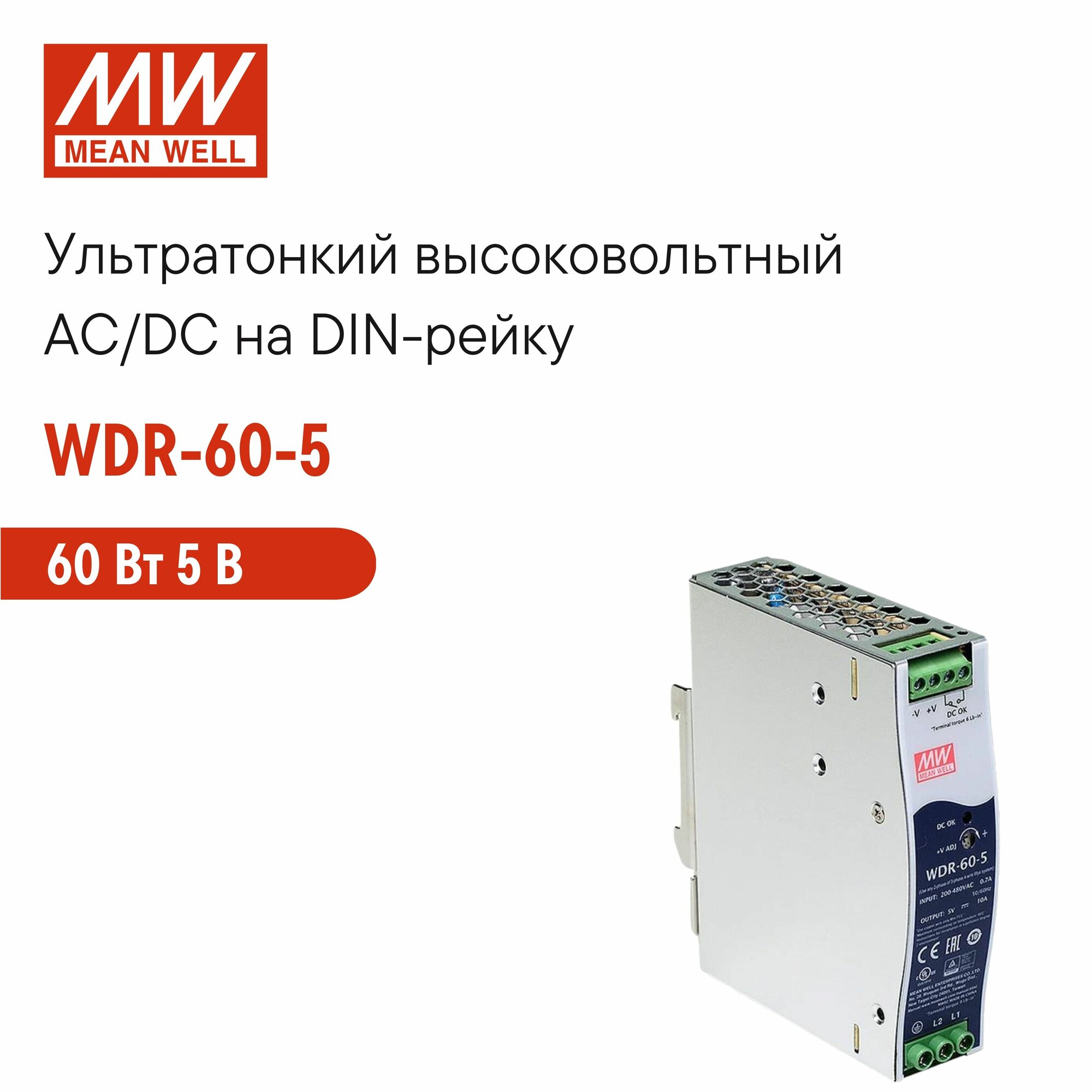 Купить WDR-60-5 MEAN WELL, Блок питания на DIN-рейку, AC/DC 60 Вт 5 В с доставкой по всей России. WDR-60-5 MEAN WELL, Блок питания на DIN-рейку, AC/DC 60 Вт 5 В: сравнение цен, характеристики, фото, актуальное наличие и цены.