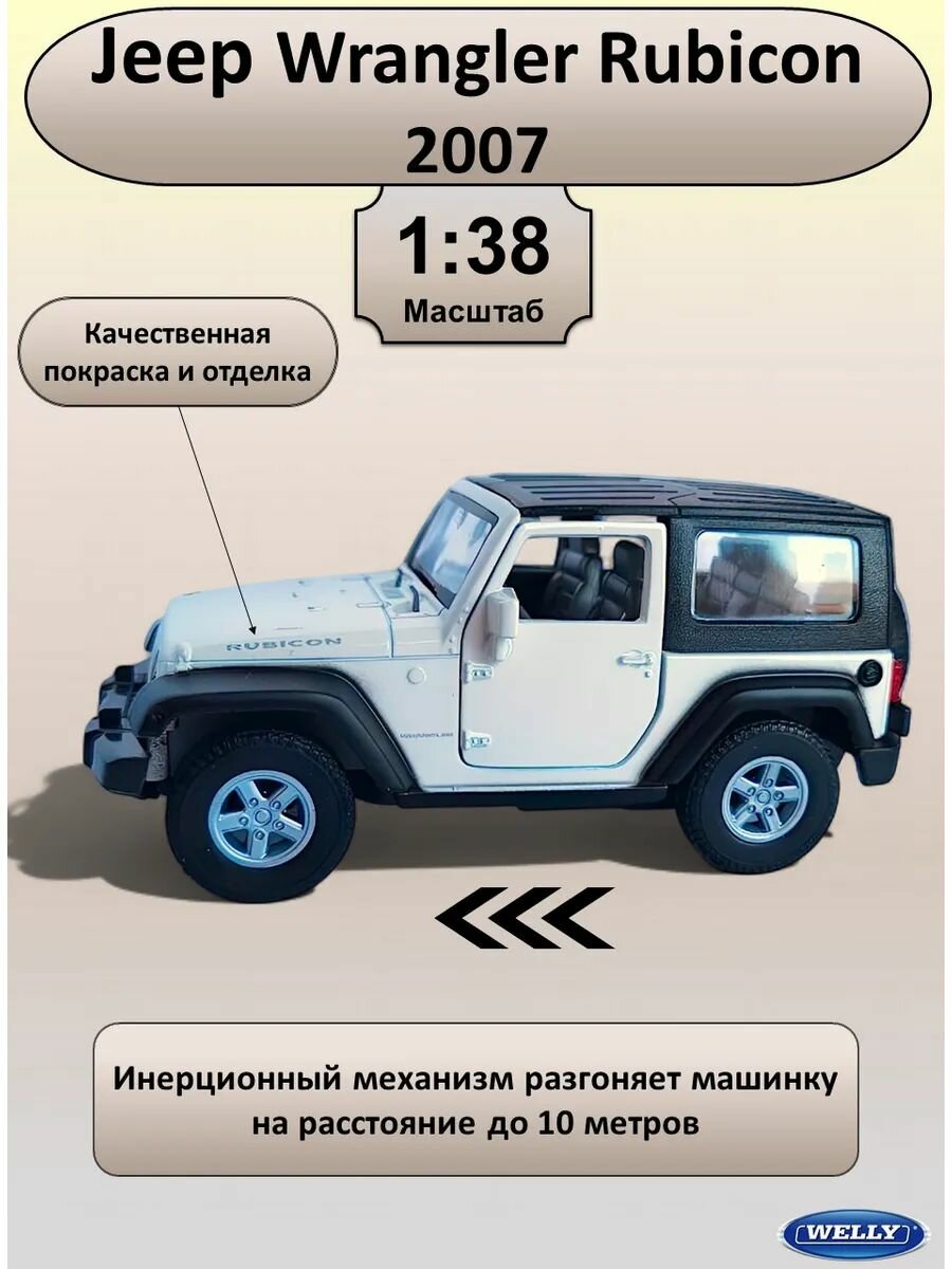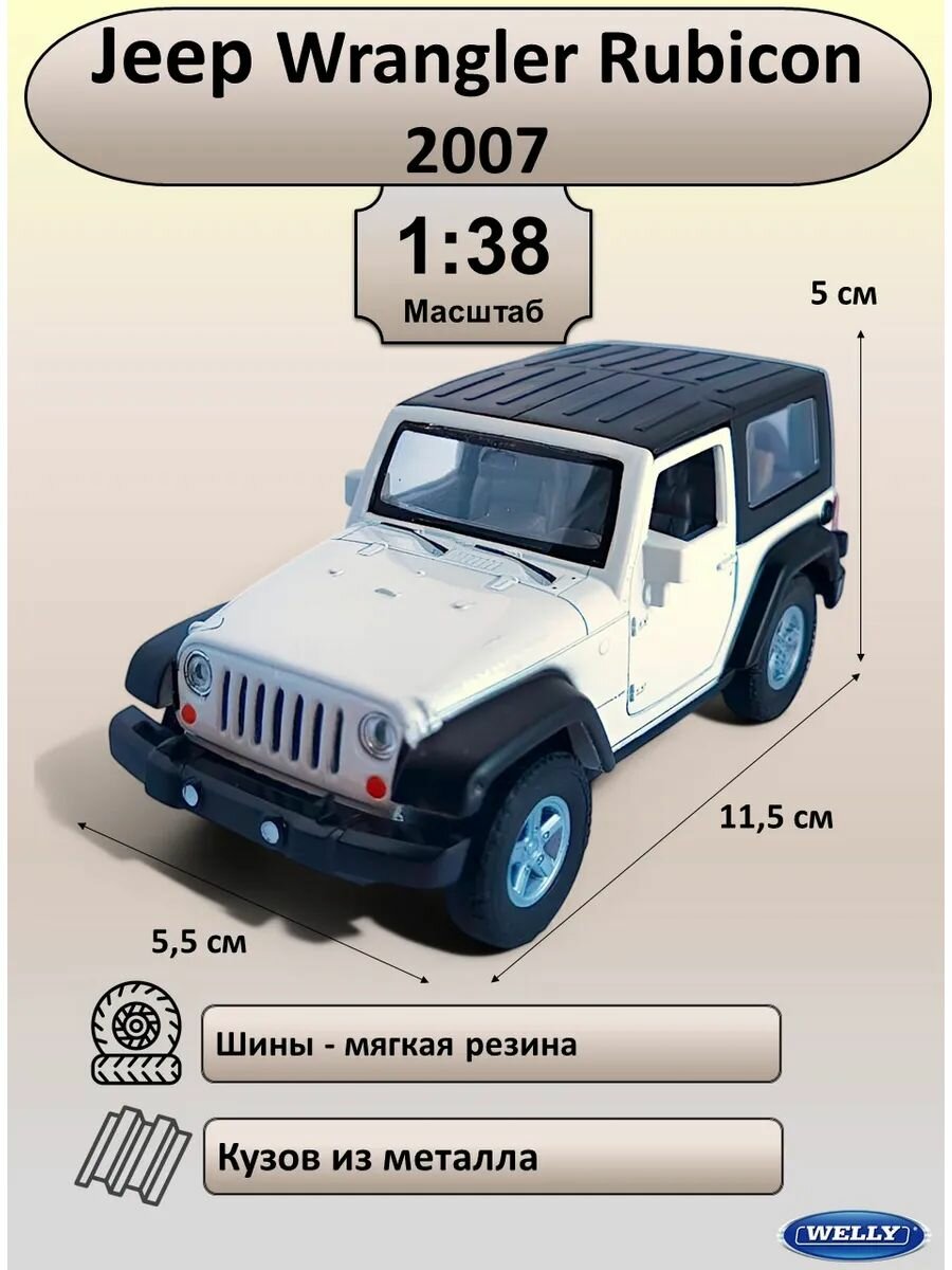 WELLY машинка металлическая коллекционная масштабная модель 1:38 Jeep Wrangler Rubicon 2007 белый: сравнение цен, характеристики, фото, актуальное наличие и цены.