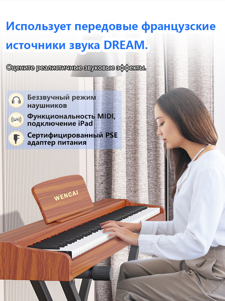Купить WENCAI Цифровое пианино с динамической клавиатурой и тройной педалью, с Х-образной подставкой для фортепиано с доставкой по всей России.