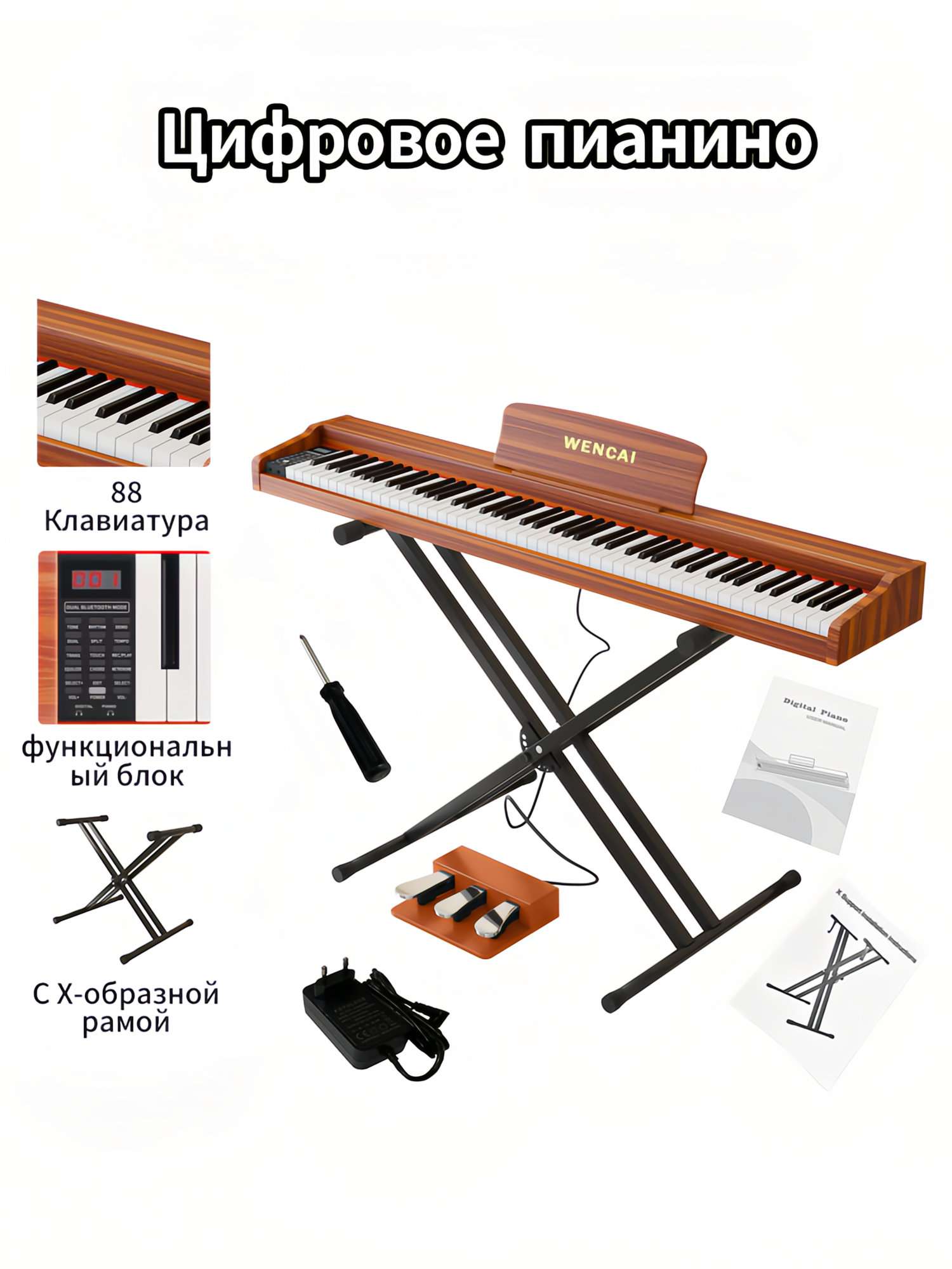 WENCAI Цифровое пианино с динамической клавиатурой и тройной педалью, с Х-образной подставкой для фортепиано: сравнение цен, характеристики, фото, актуальное наличие и цены.