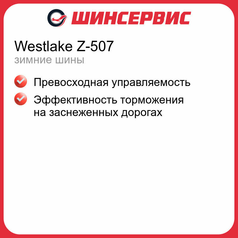 Westlake Z507 Zuper Snow. Отличается высокой эффективностью, длительным сроком эксплуатации и мягким комфортным ходом. В этих шинах применяется асимметричный узор рабочей поверхности, что свойственно для покрышек класса HP и UHP.