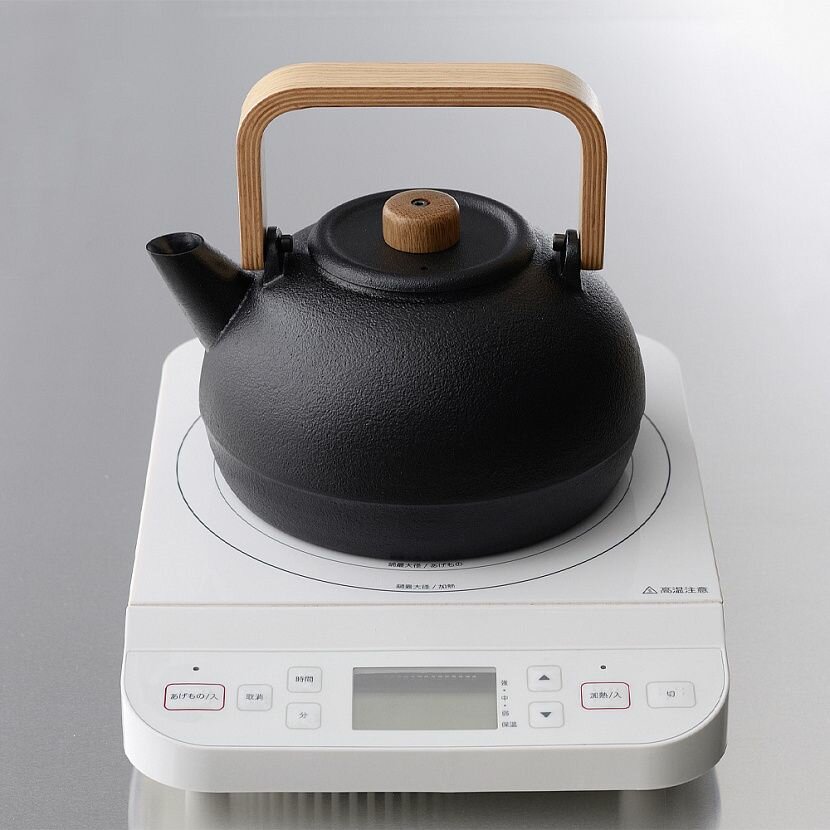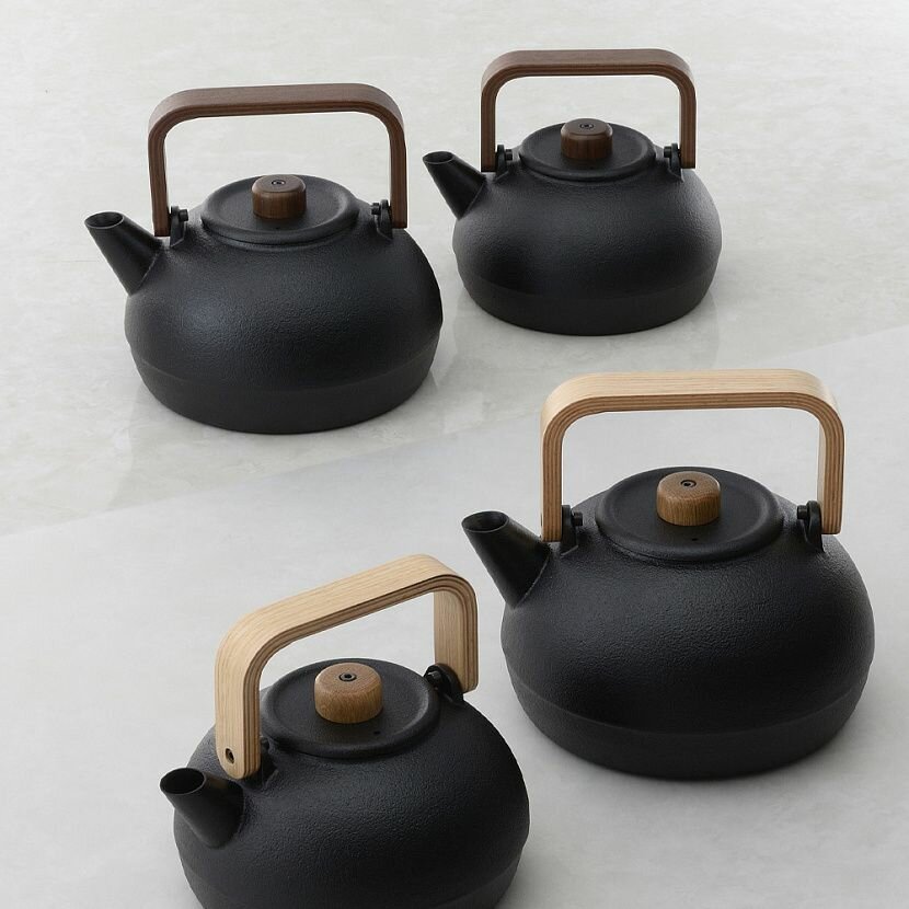 Заварочный чайник из чугуна, ручка изготовлена из неокрашенного дуба - 1 шт.