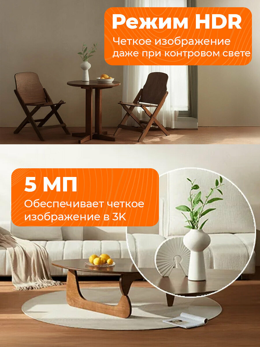Сверхчеткие изображения 3K (2960x1666) с 5-мегапиксельной камеры позволяют вам рассмотреть все мельчайшие детали вашего дома, когда вас нет дома.