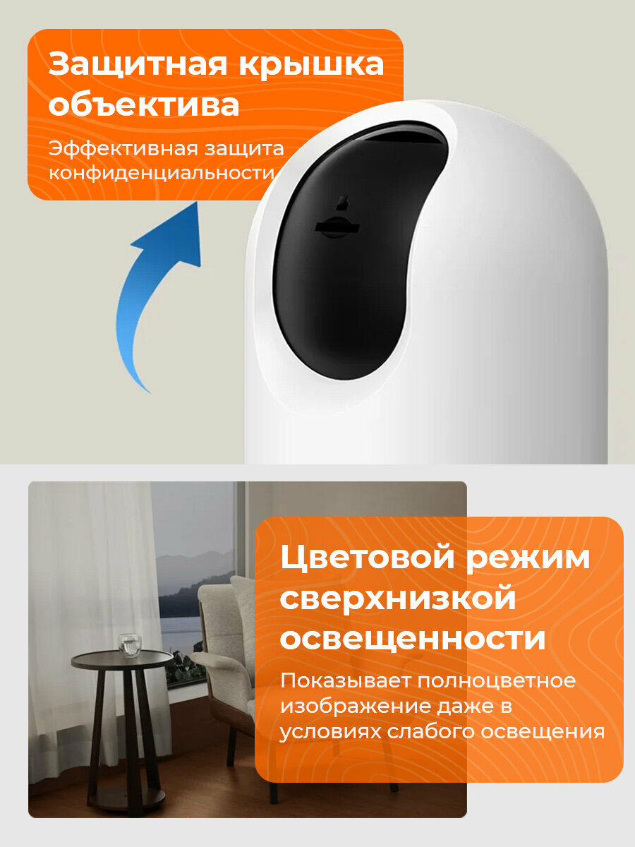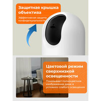 Умная безопасность. Сверхчеткое видео в формате 3K с 5-мегапиксельной камерой. Вращение на 360 градусов для полного охвата. Мощные динамики. ИИ с обнаружением человека. Двусторонний голосовой вызов в режиме реального времени. Поддержка Wi-Fi 2,4 ГГц/5 ГГц.