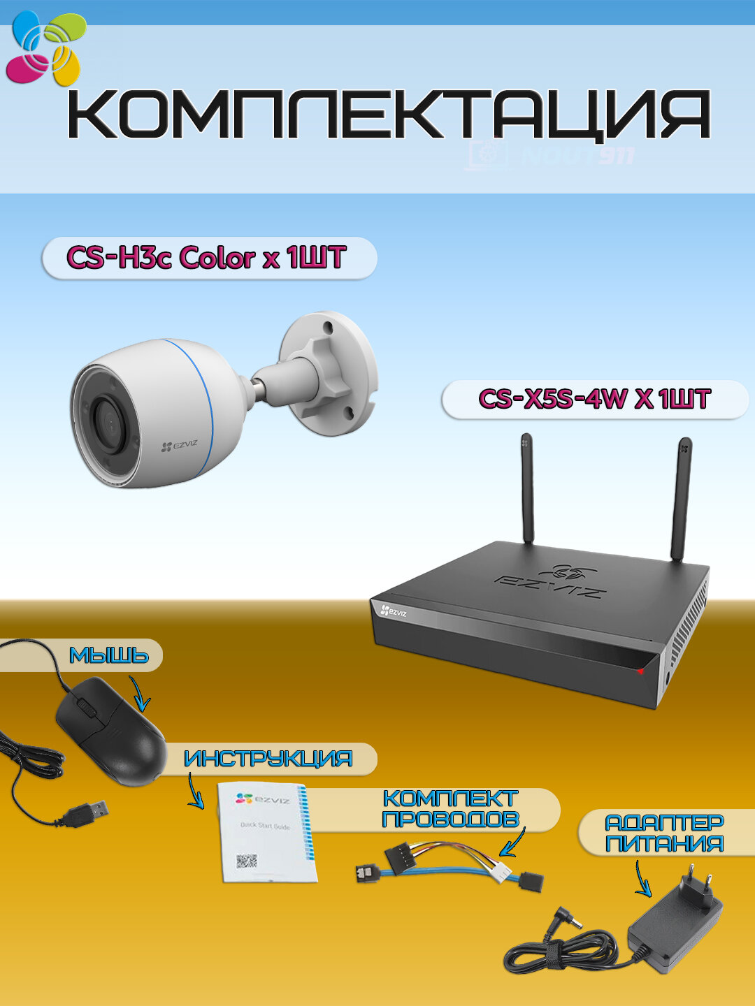 Wi-Fi Комплект видеонаблюдения EZVIZ на 1 видеокамеру — 2Мп 1080P (1хCS-H3c Color + CS-X5S-4W) Цветное ночное видение, IP67, ИК-подсветка до 30м, угол 125гр, H.265: сравнение цен, характеристики, фото, актуальное наличие и цены.