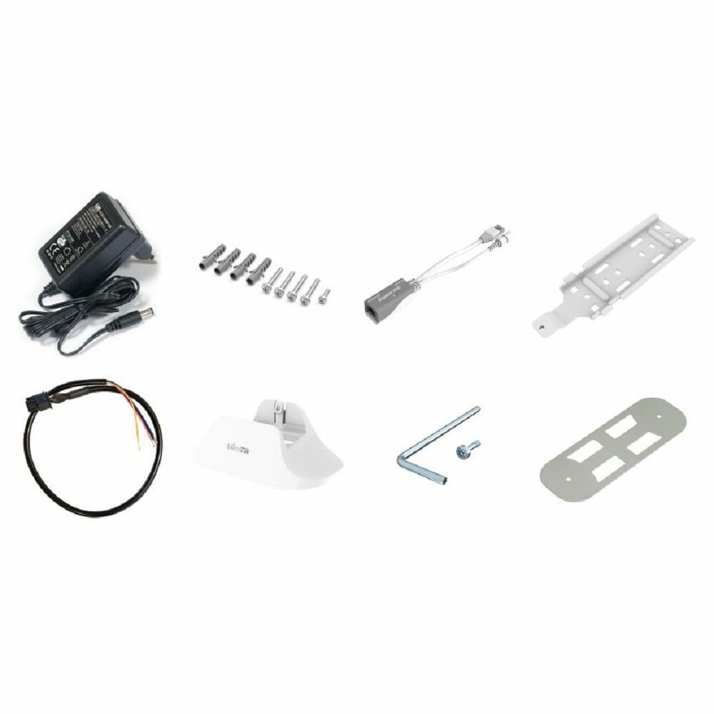 Точка доступа MikroTik wAP LTE kit (2024) (wAPR-2nD&EC200A-EU); Блок питания 24 В, 0,8 А; Комплект дюбелей для крепления точки доступа MikroTik; Гигабитный PoE инжектор; Комплект креплений для точки доступа MikroTik; Автомобильный кабель-адаптер 4-pin; Настольная подставка для точки доступа MikroTik; Монтажный комплект; Комплект креплений wAP.