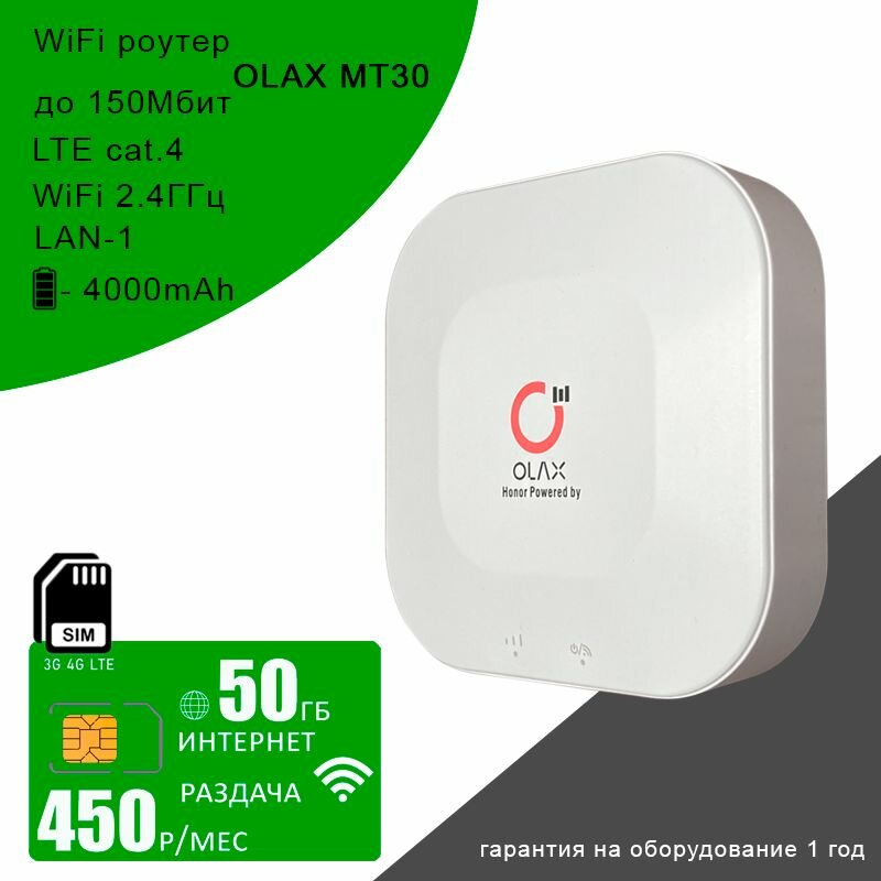 Wi-Fi роутер Olax MT30 + cим карта с интернетом и раздачей, 50ГБ за 450р/мес: сравнение цен, характеристики, фото, актуальное наличие и цены.