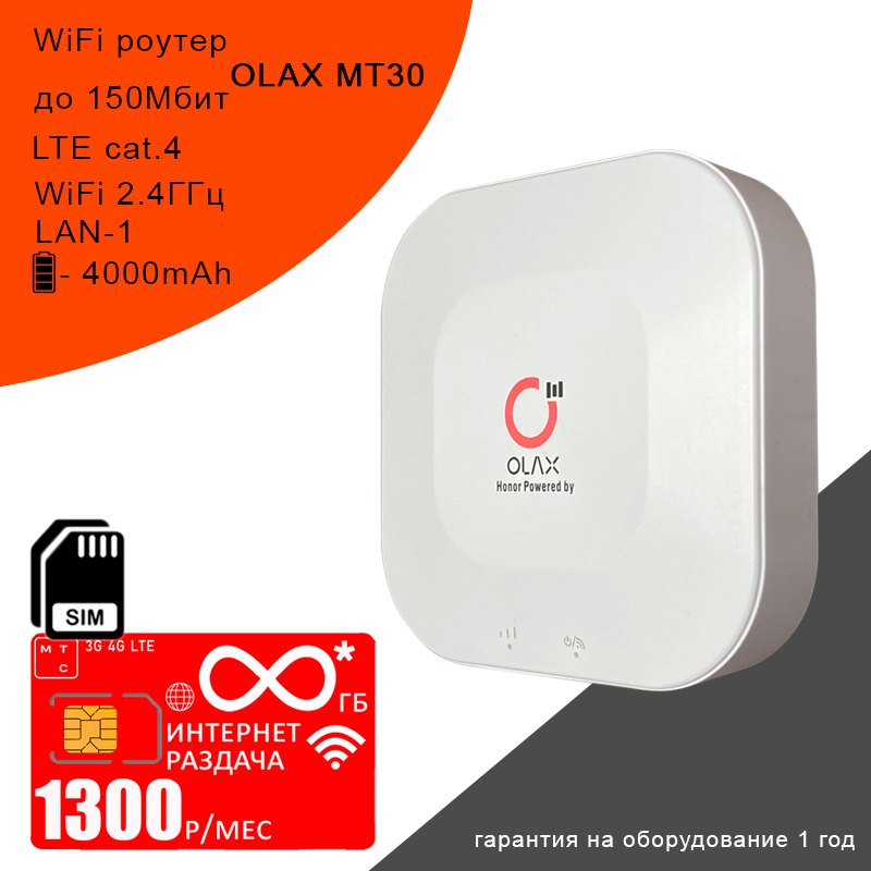 Wi-Fi роутер OLAX MT30 + сим карта с безлимитным* интернетом и раздачей в сети мтс за 1300р/мес: сравнение цен, характеристики, фото, актуальное наличие и цены.