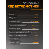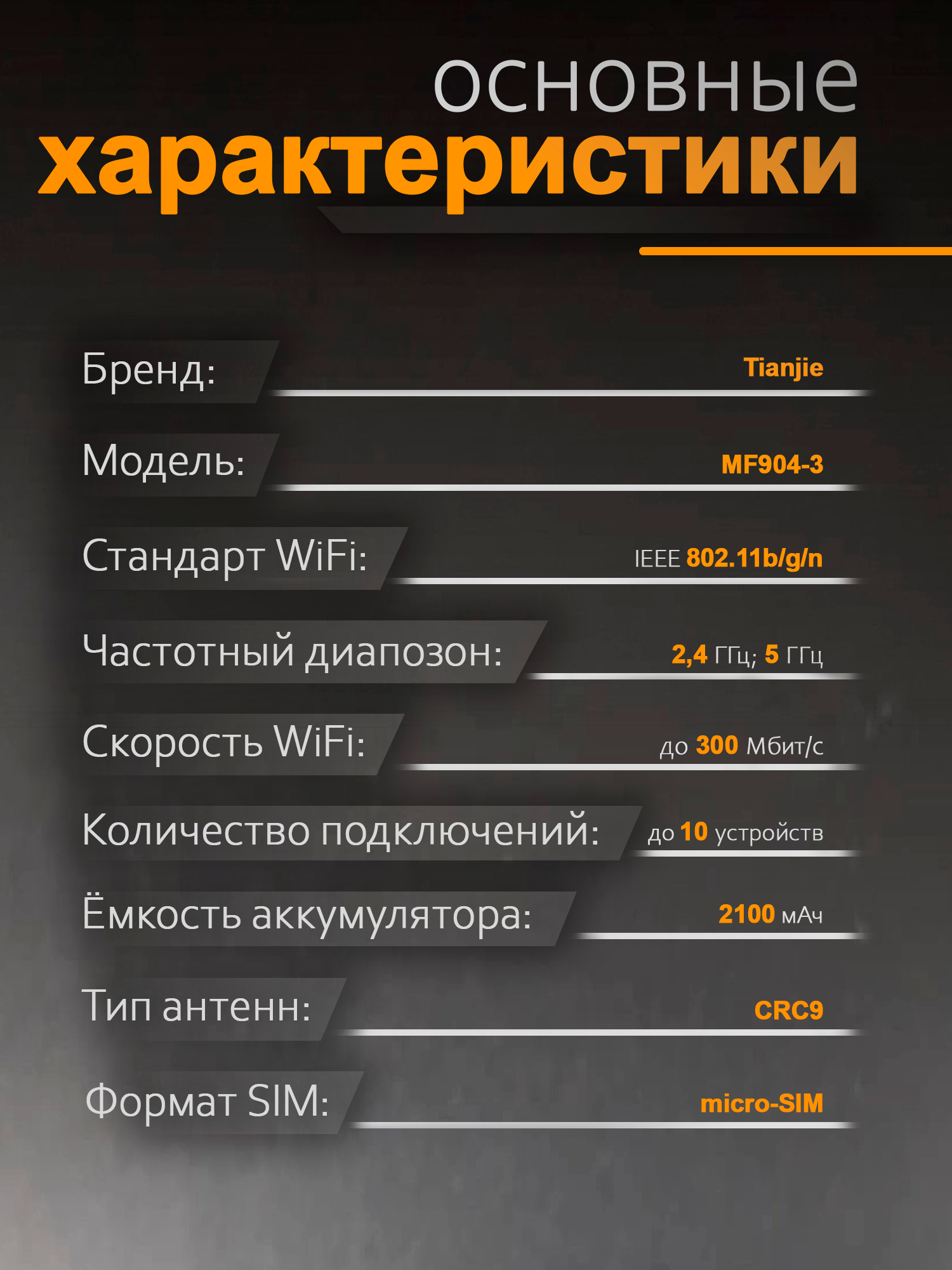 | Дополнительная информация | Роутер Wifi Аккумулятор 2100mAh Usb шнур Внешняя антенна |