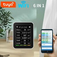 Купить Wi-Fi Tuya Термометр электронный для дома 6 В 1 Детектор качества воздуха CO2 Монитор Датчик температуры-GHFS с доставкой по всей России.