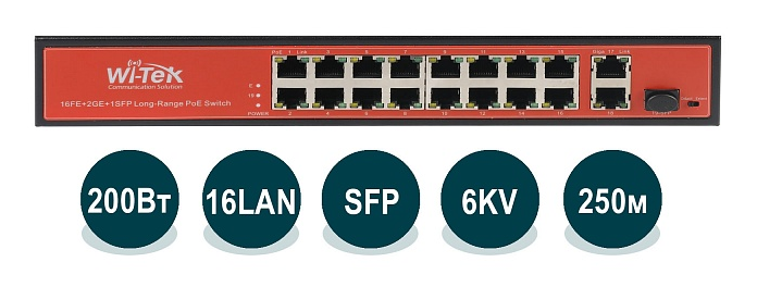 WI-PS518G, Коммутатор неуправляемый PoE 200Вт, порты 16 PoE FE, 1GE, 1Combo, режим 250м, Watchdog: сравнение цен, характеристики, фото, актуальное наличие и цены.