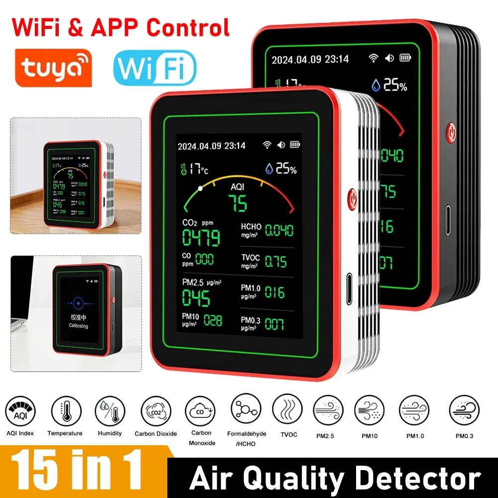 Купить WiFi 15-в-1 Портативный тестер AQI PM0.3 PM1.0 PM2.5 PM10 TFT-дисплей Бытовой тестер CO CO2 TVOC HCHO APP Control Детектор CO2, Black с доставкой по всей России.