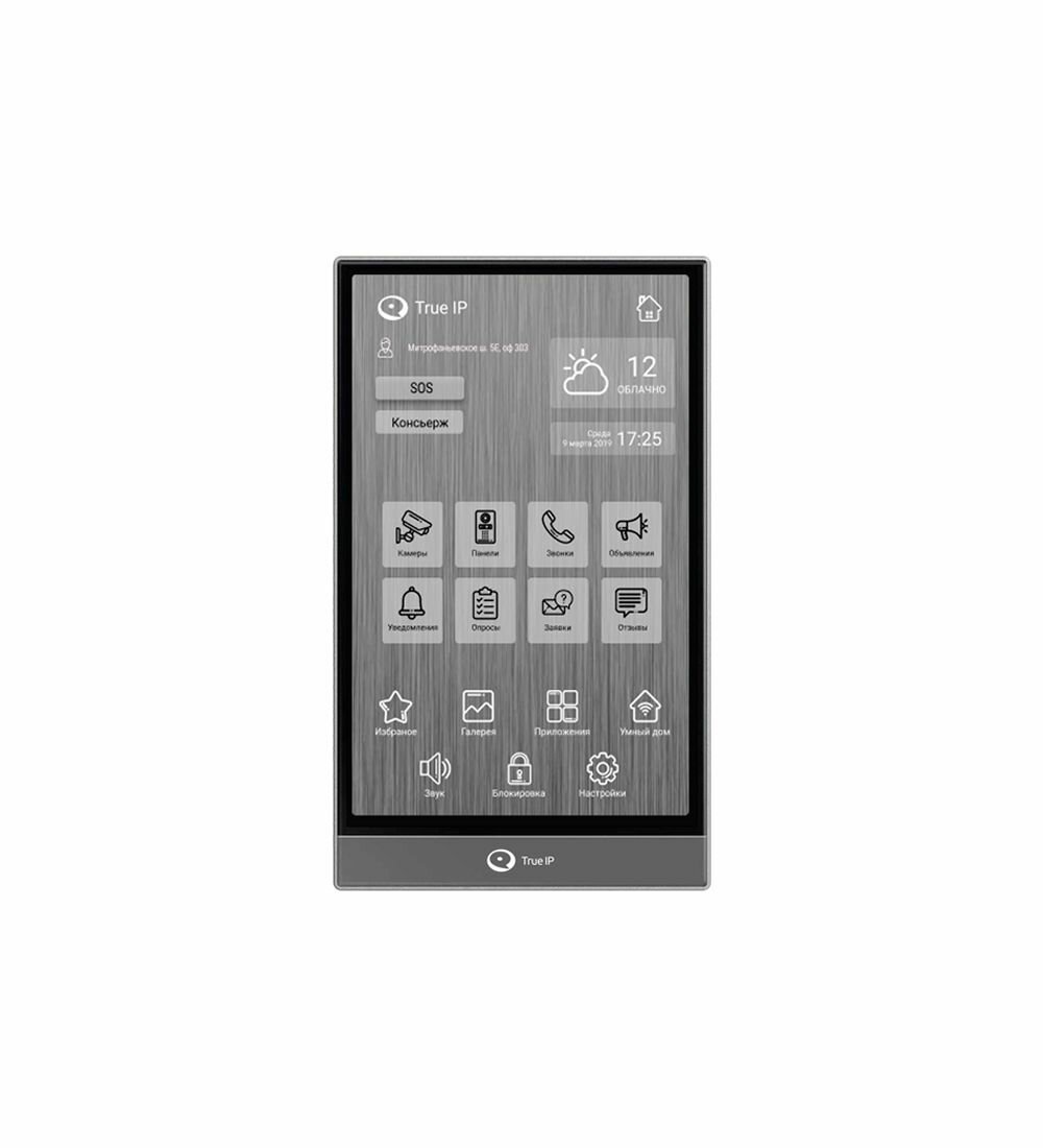 Вертикально ориентированный сенсорный абонентский монитор True IP TI-4107LB для IP-видеодомофона построен на базе высокопроизводительного процессора Cortex A53 64 bit, операционной системы Android 6. Укомплектован емкостным цветным IPS-дисплеем диагональю 8", разрешением 1280×800. Поддерживает видеокодек H.264. Не ограничен по количеству подключаемых панелей и камер.
