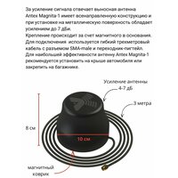 Уличные антенны Antex Magnita-1 на магнитном креплении мощностью 7 дБи являются как усилителями сигнала, так и средством обмена данными с вышкой оператора. Их не нужно направлять на базовую станцию, они работают во всех направлениях одновременно. Крыша автомобиля выступает дополнительным отражателем. Комплектного шнура длиной 3 метра достаточно, чтобы подключить антенну к салонному роутеру в легковом и грузовом автомобиле с любой конфигурацией кузова.