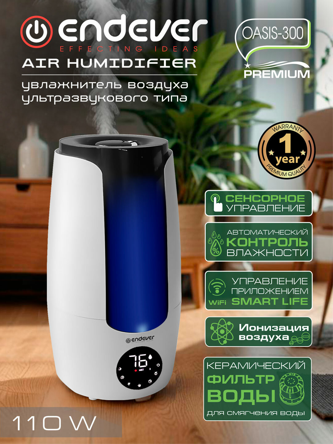 Wifi Увлажнитель воздуха ультразвукового типа ENDEVER OASIS-300, 8 литров, управление смартфоном для помещения 50 м2: сравнение цен, характеристики, фото, актуальное наличие и цены.