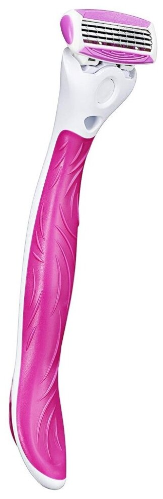Станок имеет нежный, женственный дизайн, рифленую поверхность, что позволяет избегать ускользания из руки во время бритья.