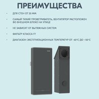 - Уровень шума в режиме притока, дБА20-37,5КПД, не менее80%
