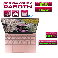 Ноутбук 15.6" с розовым корпусом и русской раскладкой клавиатуры.