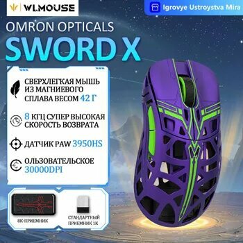 Игровая мышь беспроводная Sword X Беспроводная связь 8K-OM Opticals, фиолетовый