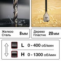 Благодаря двухстороннему планетарному редуктору, этот инструмент обладает высокой частотой вращения и крутящим моментом, что позволяет ему эффективно работать с различными материалами. Мгновенная остановка вращения шпинделя предотвращает срыв резьбы крепежа при работе с мягкими материалами.