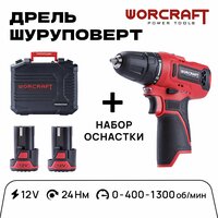 Дрель-шуруповёрт в кейсе WORCRAFT и набор оснастки 12V/24Hm.