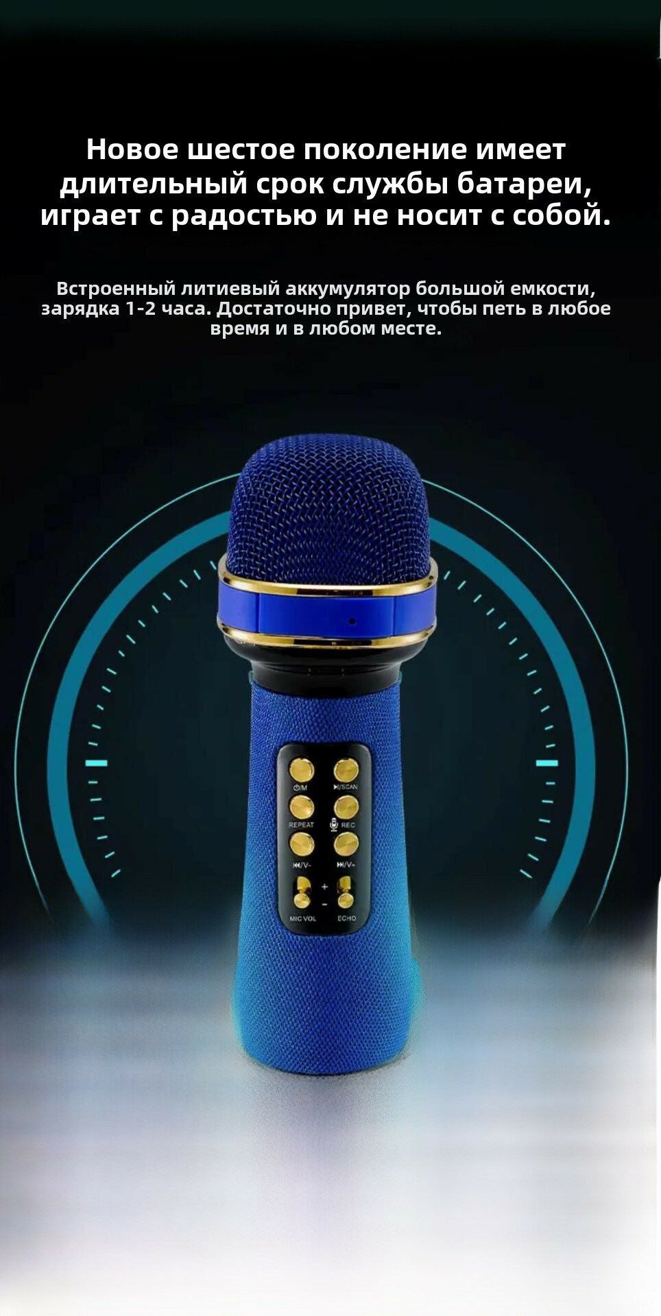 Купить Ws-898 мобильный телефон KGebao беспроводной домашний микрофон bluetooth микрофон для K Song с аудио Синий с доставкой по всей России.