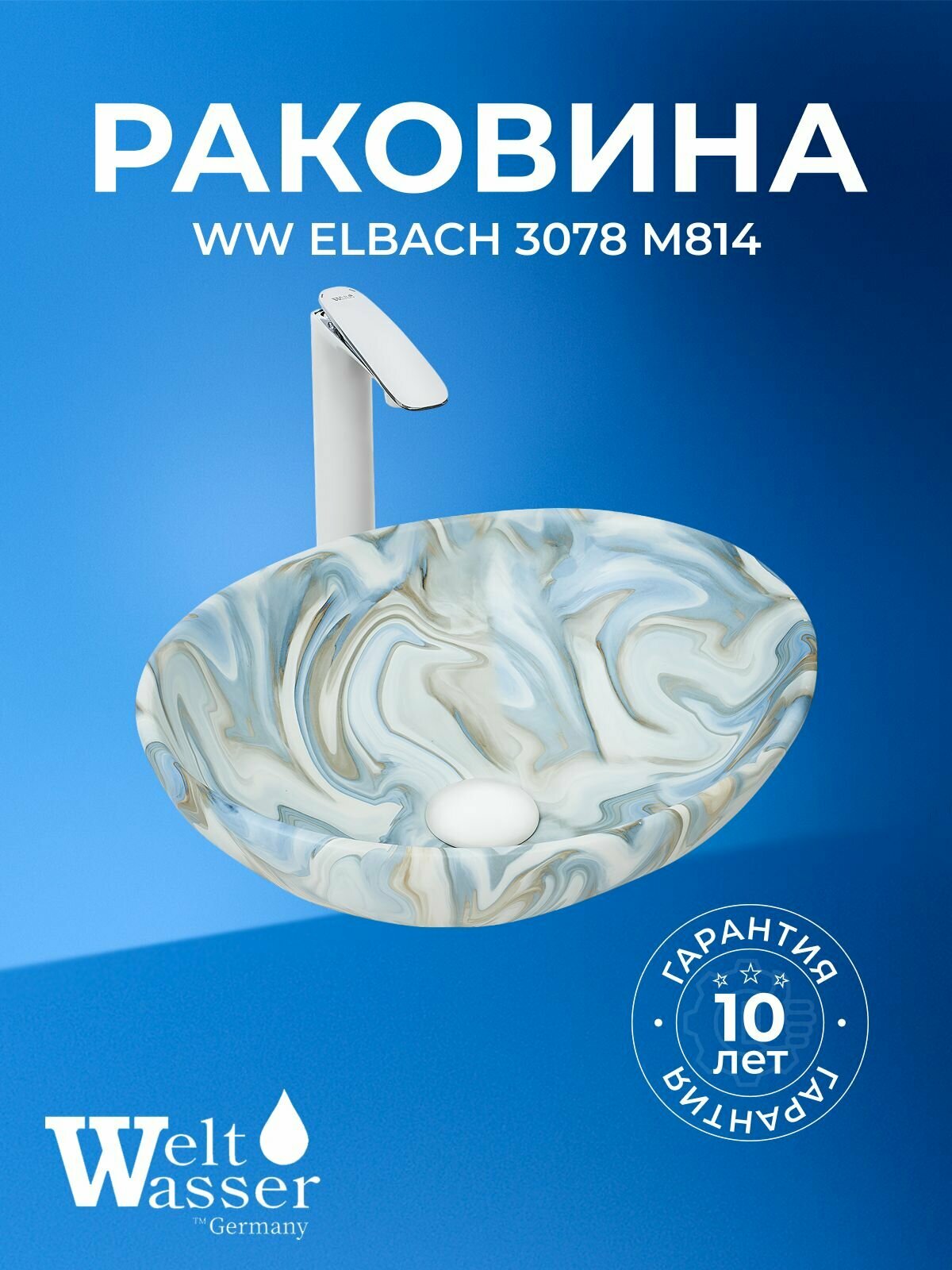 WW ELBACH 3078 M814 Раковина накладная (мрамор белая с голубым и серым) 410х335х145: сравнение цен, характеристики, фото, актуальное наличие и цены.