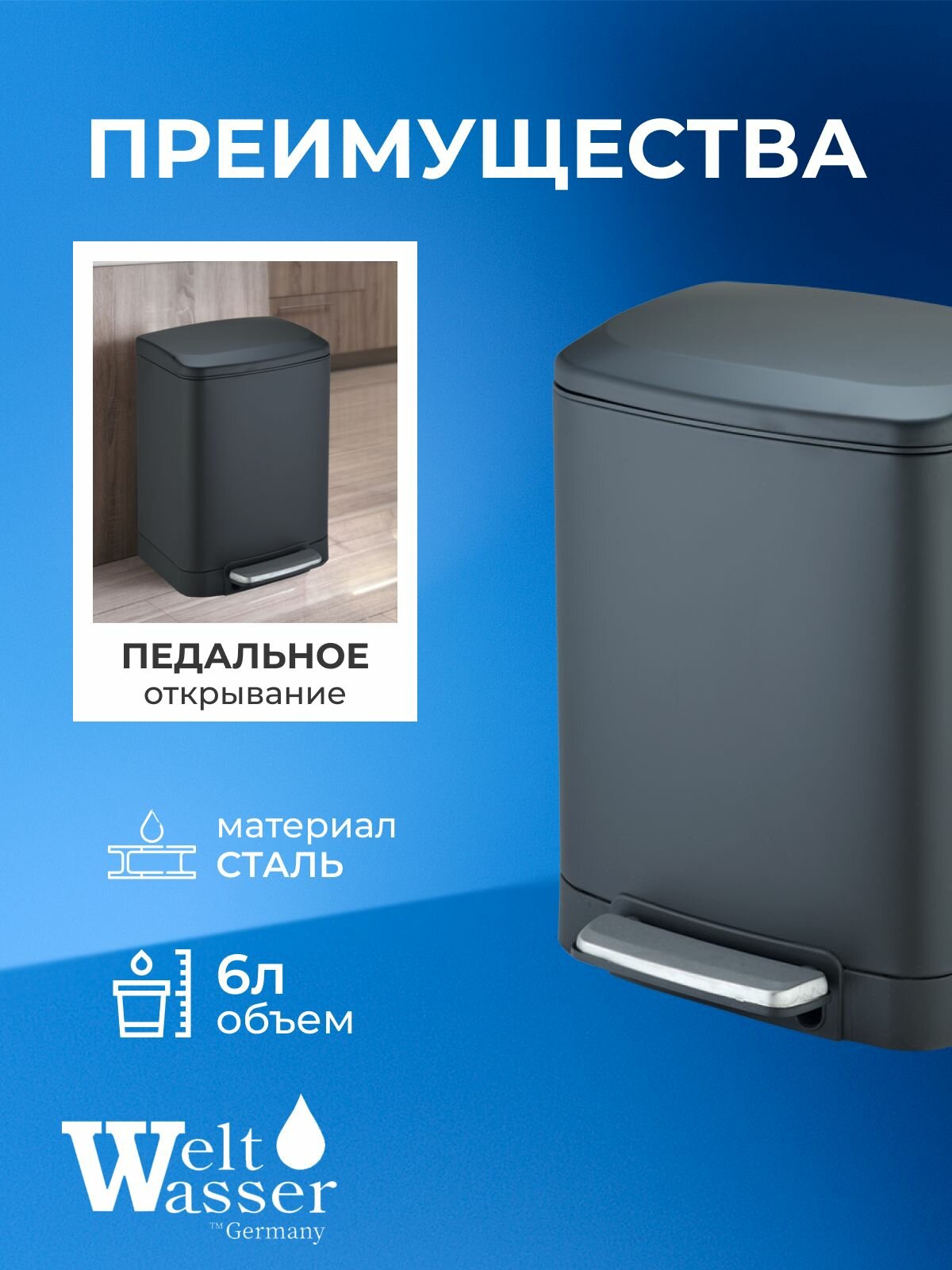 WW GOLF BL 6L Педальное ведро. Черный матовый: сравнение цен, характеристики, фото, актуальное наличие и цены.
